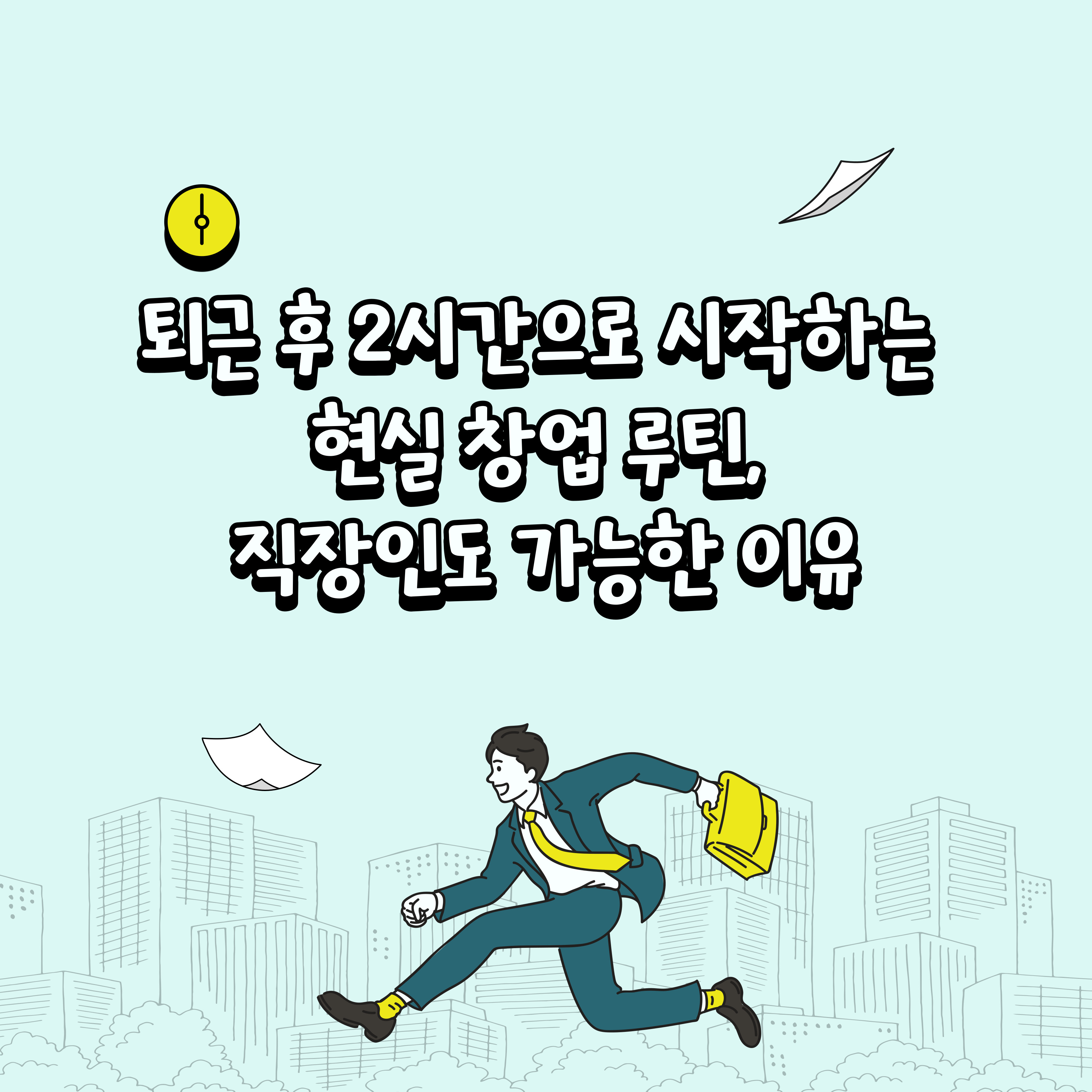 ‘퇴근 후 창업 루틴’이라는 말은 생소하게 들릴 수 있습니다. 하지만 핵심은 단순합니다. 하루 24시간 중 퇴근 후 단 2시간을 확보하여, 반복적으로 창업과 관련된 활동에 투자하는 것입니다.