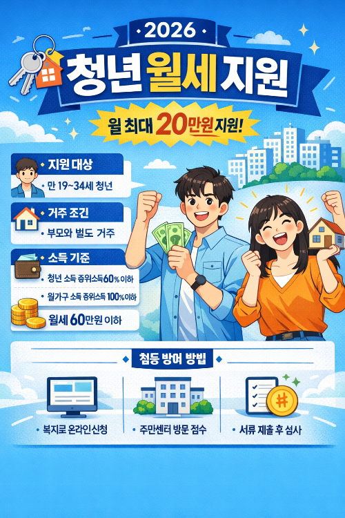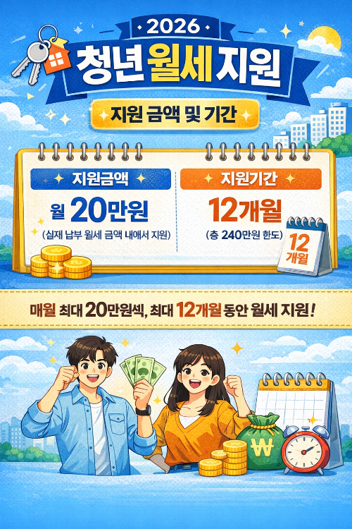 2026년 청년 월세 지원 제도는 월 최대 20만 원을 최대 12개월 동안 지원받을 수 있는 매우 실질적인 청년 복지 정책입니다.