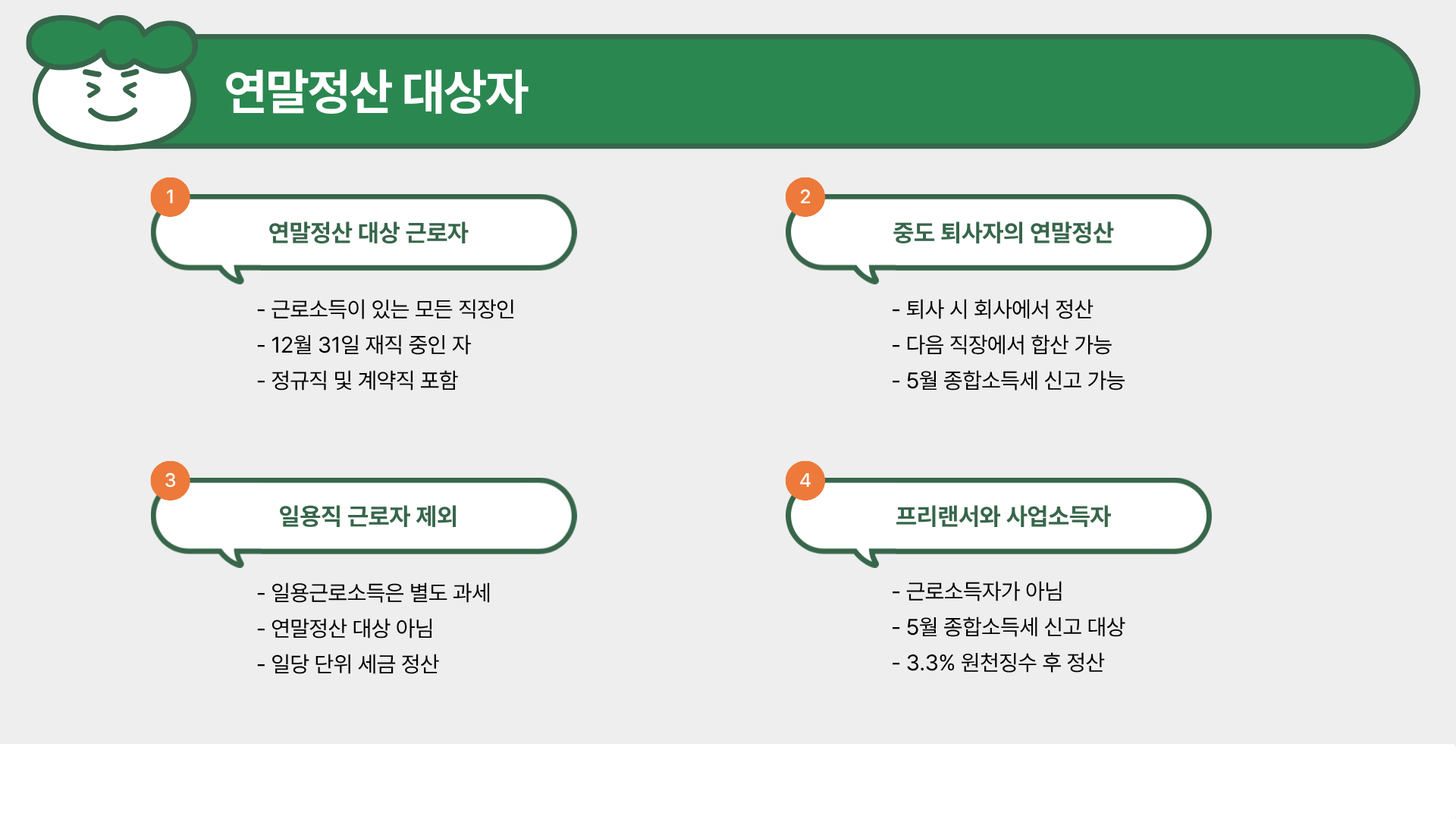 즉, 회사에서 급여를 받는 근로자라면 대부분 연말정산 대상자입니다.
