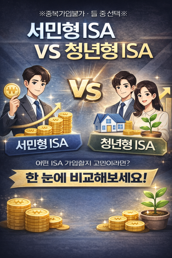 | ISA 일반형 vs 서민형 비과세, 절세 얼마나? 차이점 정리(2026년 최신기준) (0) | 2026.02.18 |