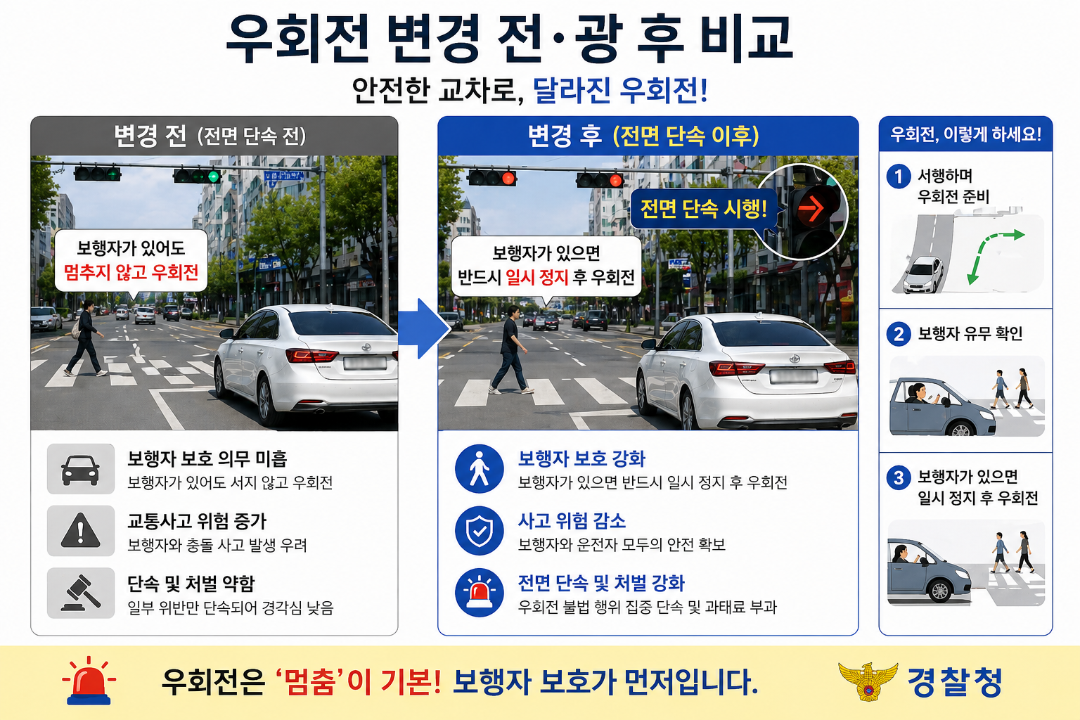 최근 경찰청이 전국적으로 우회전 일시정지 위반 단속을 대폭 강화하면서